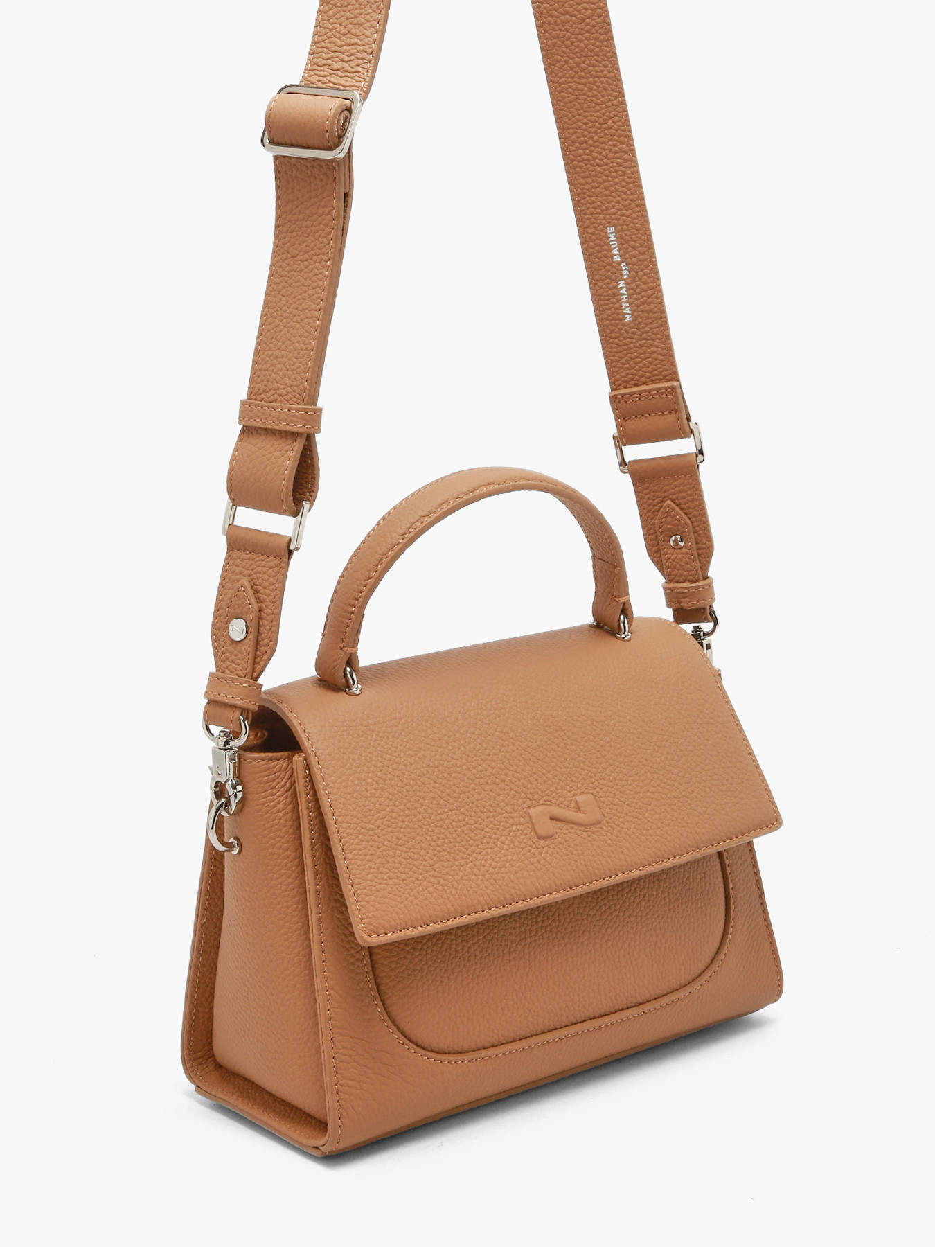 De cross body tas Charlene van NATHAN BAUME belichaamt moderne elegantie en dagelijkse functionaliteit. Vervaardigd uit hoogwaardig rundleer, charmeert hij door zijn soepele en tegelijk stevige textuur, die zorgt voor een verfijnde en duurzame uitstraling. De verfijnde flap, afgesloten met een discreet metalen slot, voegt een vleugje tijdloze chic toe, terwijl de compacte vorm ideaal blijft om uw essentials stijlvol mee te nemen. Ontworpen om zich aan al uw wensen aan te passen, is de tas voorzien van een verstelbare en afneembare schouderriem, zodat u hem op de schouder, crossbody of in de hand kunt dragen dankzij het kleine handvat met een hoogte van 9 cm. Functioneel uitgerust met een voorvak en een achtervak, houdt u uw onmisbare items altijd binnen handbereik. Het interieur is ingedeeld met een hoofdvak, een open vak en een ritsvak voor de veilige opberging van uw spullen. Een subtiele combinatie van verfijning en praktisch gebruiksgemak, de Charlene is de ideale metgezel voor elke gelegenheid.