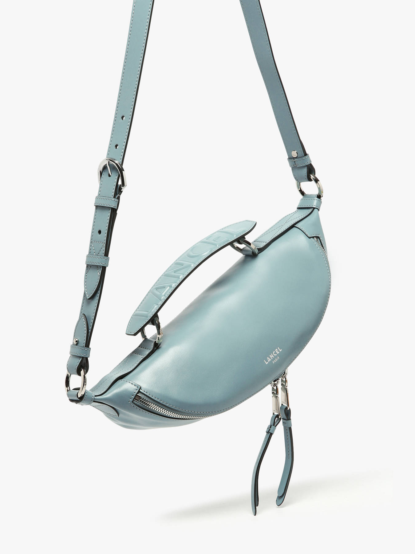 Laat je verleiden door de originele vorm en exceptionele leerkwaliteit van Lancel's Origami tas. Dankzij z'n unieke vorm en brede verstelbare schouderriem kan deze damestas gekruist over de borst of losjes over de schouder gedragen worden: een belt bag en crossbody in één! De tas is gemaakt van glad soepel rundsleer met een matte finish, en werd afgewerkt met zilver- of goudkleurige hardware. De tas opent aan de achterzijde met behulp van een rits, en onthult een mediumgroot interieur. Perfect om jouw dagelijkse essentials veilig in op te bergen! De Origami van Lancel is beschikbaar in 3 formaten, waarbij dit het middenformaat is.