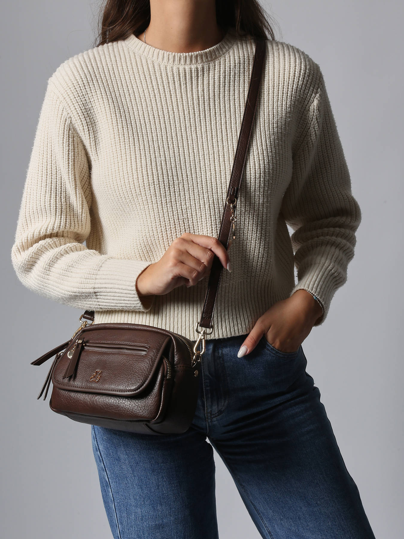 • Cross Body Tas Pocket Lulu castagnette Bruin pocket ZAHRA