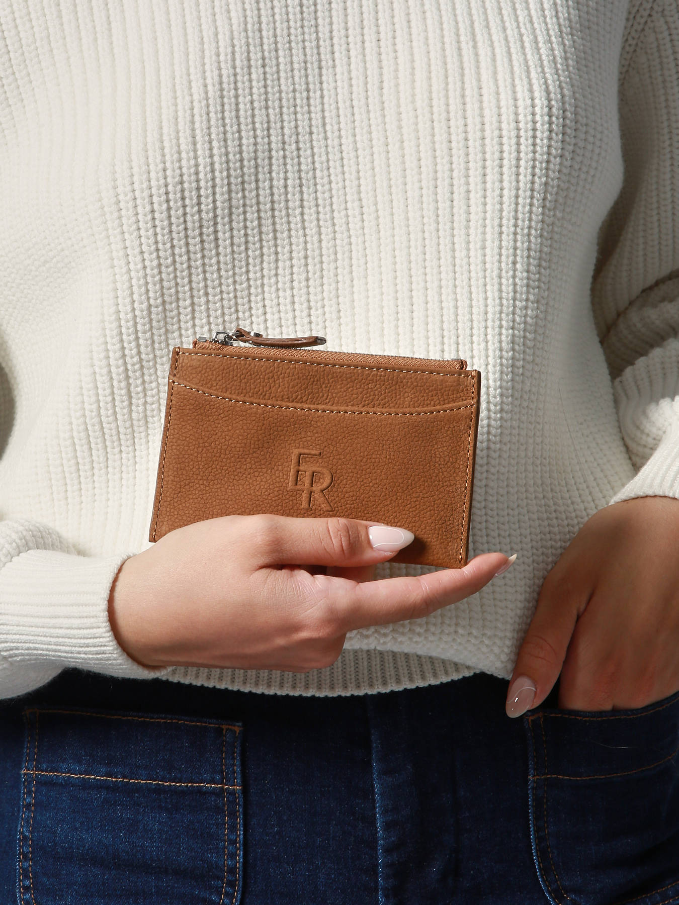 De ETRIER-kaarthouder uit de CAVALIER NUBUCK-lijn combineert eenvoud en functionaliteit in een compact formaat. Gemaakt van nubuck, charmeert hij door zijn fluweelachtige aanraking en elegante uitstraling. Hij beschikt over een hoofdvak met ritssluiting, ideaal om uw kleingeld veilig op te bergen, evenals vier aparte vakjes voor uw bankkaarten. Het in reliëf aangebrachte ETRIER-logo onderstreept op subtiele wijze de authenticiteit en verfijning van dit dagelijkse accessoire. Een praktische en stijlvolle metgezel, ontworpen om u overal licht en moeiteloos te vergezellen.