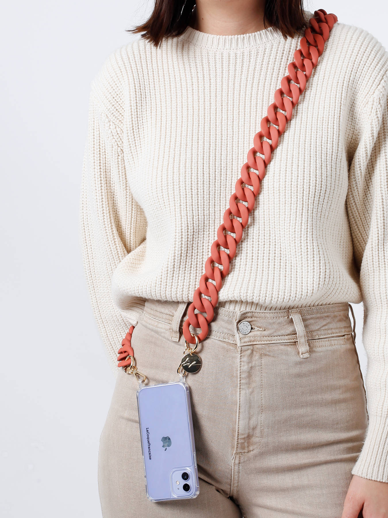 Deze SARAH-ketting van La Coque Française is het ultieme accessoire om jouw iPhone om te toveren tot een trendy en functioneel item. Deze telefoonketting is gemaakt van hoogwaardige hars, en heeft een comfortabele lengte van 120 cm. De ketting weegt slechts 100 gram, wat zorgt voor een optimaal draagcomfort. De goudkleurige musketonhaakjes voegen een vleugje elegantie toe, terwijl de zalmroze maxi-schakels voor een stevige dosis kleur zorgen. Draag deze ketting rond je nek of gekruist over de schouder, zo heb je je smartphone altijd binnen handbereik. Het perfecte accessoire voor wie op zoek is naar stijl en functionaliteit!
