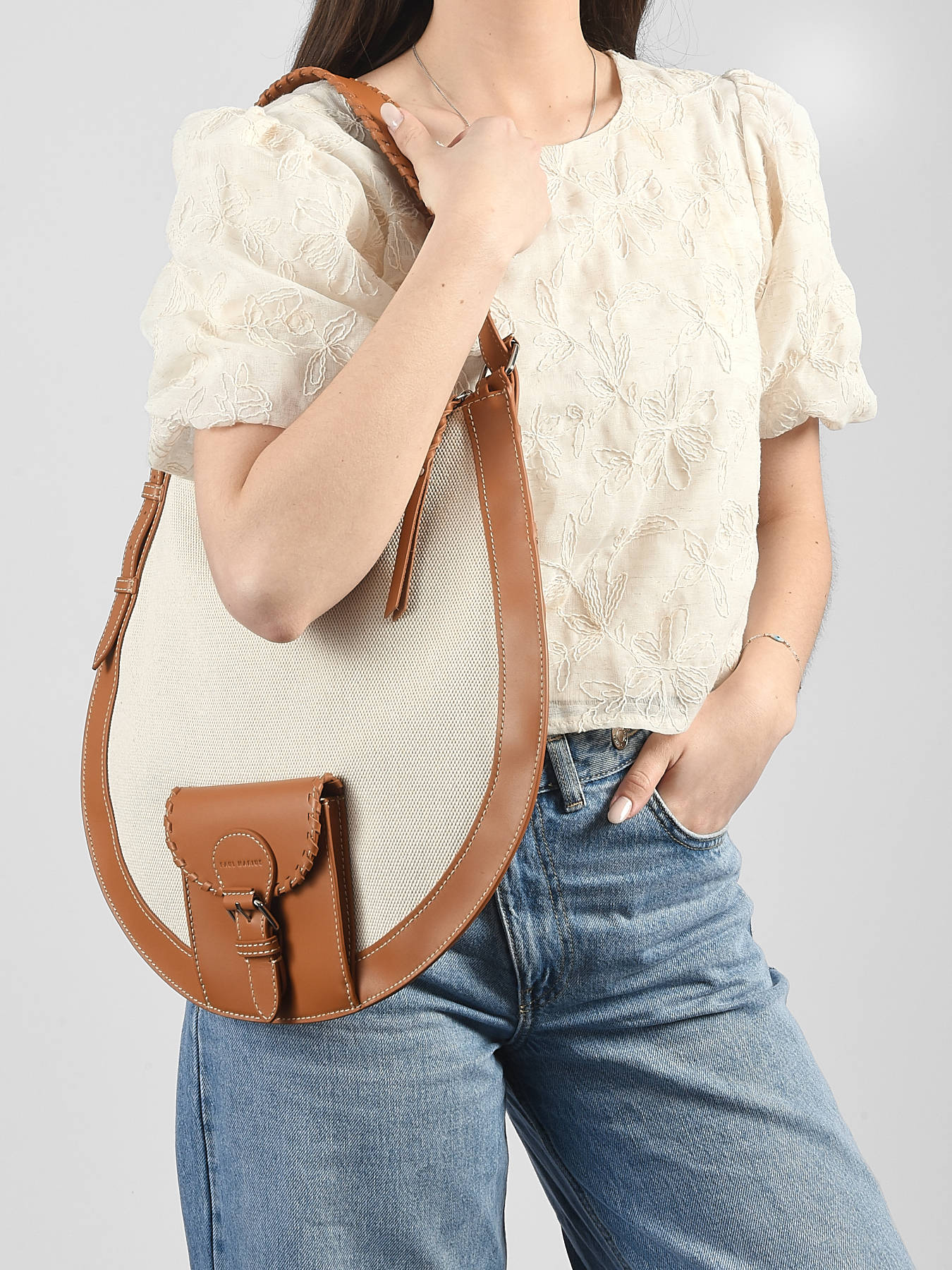 Schoudertas Hobo M Escapade katoen en leder PAUL MARIUS